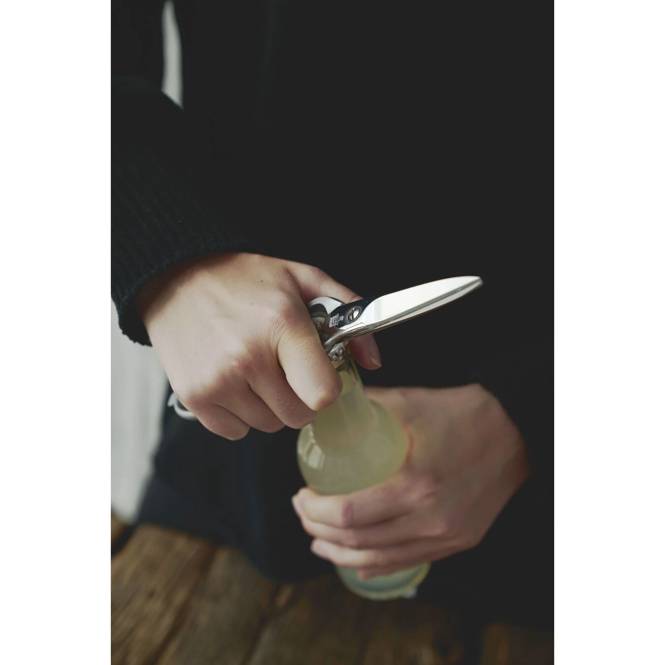 - Im Griff integrierte Kapsel- u. Deckelheber, Drehverschlussöffner